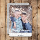 Votre photo occupe le centre de la scène avec une jolie bordure blanche de flocon de neige autour de lui sur le devant de cette carte de vacances. En bas se trouve une bannière blanche avec votre texte personnalisé en gris foncé. Le dos de la carte est gris moyen solide, avec la même bordure de flocon de neige. Une élégance simple pour votre photo de famille !