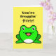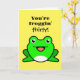Une drôle de carte de 30e anniversaire de grenouille pour elle ou lui montrant un "vous êtes froggin" sur le devant avec une drôle de grenouille verte. Cette carte d'anniversaire de grenouille jaune et verte serait idéale pour les amateurs de grenouilles.