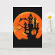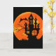 Une image éffrayante d'une maison hantée déplaisante, avec une chauve-souris volante au-dessus, le tout contre une pleine lune orange de sang pour Halloween.
