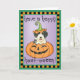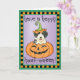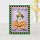 Envoyez des salutations d'Halloween avec cette carte d'un mignon chiot Collie à la tête d'un Jack-o-Lantern souriant. Idéal pour les enfants de tous âges qui aiment les Beardies et Halloween. Faites une Happy HOWL-oween !