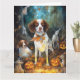 Carte Halloween Brittany Spaniel avec citrouilles effray