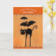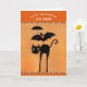 Carte d'Halloween créative avec un drôle de chat noir et un acrobat avec un parapluie. Ajoutez son nom pour personnaliser.