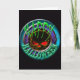 Un crâne aux yeux rougissants est encadré par une lune bleue qui porte les mots "happy Halloween" et les arbres morts noirs.