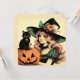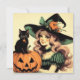 Carte Halloween sorcière avec chat noir et Jack-o-lanter