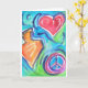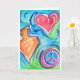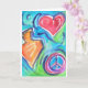 Carte Hanoukka joliment peinte avec l'image de coeur, signe de paix et Dreidel. Personnalisable, Vierge à l'intérieur