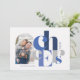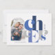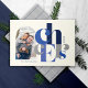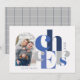 Ces cartes de voeux de vacances de 7" x 5" présentent le salut "Cheers" en gros bleu et gris sur un arrière - plan blanc en mousseline. Customisez avec votre photo préférée, votre nom et votre année.