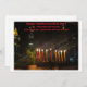 L'image représente une carte Hanoukka avec un paysage urbain nocturne et un menorah lumineux au premier plan. La menorah a neuf bougies, toutes éclairées, symbolisant les huit nuits d'Hanoukka. La carte inclut le message "Happy, Healthy Hanoukka 2024" et vous pouvez personnaliser le texte !