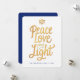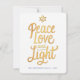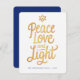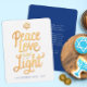 Célébrez la joie d'Hanoukka avec cette carte de vacances élégante "Paix, Amour et Lumière", avec un élégant script or et un accent Star of David. Un message sincère sur le dos ajoute chaleur et sens, le rendant parfait pour envoyer des bénédictions à des amis et à la famille. Personnalisez avec votre nom de famille et votre année pour une touche festive et personnalisée. Une belle façon de répandre la lumière et d'aimer cette saison des fêtes !