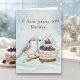 Created to celebrate a 30th birthday in January, this card captures a peaceful winter moment with a Red-breasted Nuthatch gently helping decorate a vanilla cake topped with blueberries and raspberries. Hand-painted in watercolor and pen, it blends nature, warmth, and artistic detail to mark a meaningful milestone.