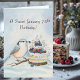 Created to celebrate a 75th birthday in January, this card captures a peaceful winter moment with a Red-breasted Nuthatch gently helping decorate a vanilla cake topped with blueberries and raspberries. Hand-painted in watercolor and pen, it blends nature, warmth, and artistic detail to mark a meaningful milestone.
