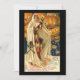 Une carte vintage à plat avec une belle dame costumée dans une robe à caractères arlequins et un manteau avec un crâne et des os croisés. Des citrouilles aux grands yeux ouverts sont derrière elle. Sur l'image on peut lire The Magical Hallowe'en. N'hésitez pas à customiser cette carte.