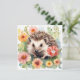 Carte Hérisson à l'aquarelle et fleurs