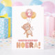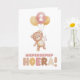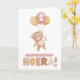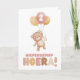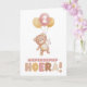 Célébrez un anniversaire d'enfant d'une manière douce et ludique avec cette carte d'anniversaire en peluche avec un ours en peluche et des ballons. L'illustration peinte à la main dans des couleurs pastel chaudes dégage de la gaieté et de la douceur, parfaite pour les jeunes enfants.