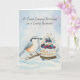 Designed to honor a cherished husband, this January birthday card features a serene winter scene with a Red-breasted Nuthatch adding a gentle touch to a vanilla cake topped with blueberries and raspberries. Hand-painted in watercolor and pen, it offers a thoughtful blend of nature, warmth, and artistic detail for her special day.
