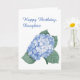 Un élégant bundle d'hydrangea dresse l'avant de cette carte d'anniversaire. Dessinée avec des pastels, la hydrangée bleue crée un design délicat et attrayant pour honorer votre fille. Les mots "Joyeux anniversaire, fille" sont écrits en face. L'intérieur est empreint d'un sentiment ironique que l'on peut garder ou customiser. Faites de votre fille un anniversaire spécial avec cette belle carte florale.