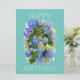 ÉLÉGANTE HYDRANGÉE BLEUE ET OR AVEC DES FEUILLES VERTS ET DES COEURS D'OR HEUREUX CARTE D'ANNIVERSAIRE VOUS POUVEZ TAPER UN MESSAGE PERSONNALISÉ OU LAISSER BLANC ET ÉCRIRE UN MESSAGE POUR CETTE TOUCHE PERSONNELLE