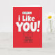 This card has a solid deep red background that sets a warm, romantic mood right away ❤️. Near the center, big white text says “i Like YOU!” in casual, slightly uneven block letters, with an exclamation point that makes it feel excited and direct. At the top, a white speech bubble shows “OK, i ADMIT IT….” in a hand-drawn style that looks a little shy, like someone working up the courage to speak. Along the bottom, two black-outlined boxes add more hand-written notes: first an underlined “i,” and then “REALLY LIKE YOU!” in a scribbly, personal look. The mix of neat block letters and rough handwriting makes the message feel like it’s building from a quiet confession to a stronger statement 💌. With its simple layout and strong color contrast, the card keeps your focus on the words and the feelings behind them. It’s a sweet choice for telling a crush, partner, or close friend exactly how you feel 🍫.