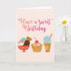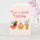 C'est un dessin de trois desserts différents de crème glacée. Il indique que "ayez un anniversaire doux" sur eux.