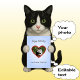 Cette carte d'anniversaire peut être utilisée pour les chats, les chiens ou tout animal de compagnie bien-aimé, il suffit de télécharger votre propre photo et de modifier le texte au besoin. Les deux salutations sur le devant peuvent être éditées : "Joyeux anniversaire" et "Du maître de la maison!" L'arrière - plan bleu clair a une conception de coeurs d'empreintes pour encadrer votre photo, et il y a plus d'empreintes à l'intérieur. Le message à l'intérieur peut aussi être customisé pour convenir : "Vous souhaitez un anniversaire parfait !"