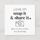 Un modèle moderne et minimal "Aimez-le ? Capturez et partagez la carte, conçue pour être placée avec vos commandes pour votre petite entreprise, et pour faire connaître votre marque ! Il est doté d'une petite forme cardiaque à côté du texte principal et d'une icône de caméra en dessous. Vous pouvez ajouter votre propre nom d'entreprise et hashtag, ou changer cette partie à quelque chose qui vous convient.