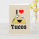 Éclairez la journée de quelqu'un avec cette carte amusante I Heart Tacos. Le destinataire est sûr de sourire à ce mignon taco de dessin animé ! Tacos — ouh !