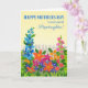 Une très jolie carte de fête des mères pour votre fille au pas, avec un lit de fleurs aux couleurs vives, fait d'un collage en papier peint à la main. Les fleurs sont grandes et petites, rouges, roses, oranges et bleues, avec une clôture blanche derrière elles, contre un arrière - plan jaune soleil. La couverture de couverture de l'accueil en lettres bleues profondes, est 'HAPPY MOTHER'S DAY to a very special Stepgirl! ' Le message intérieur n'est qu'une suggestion et vous pouvez facilement le modifier ou le supprimer si vous le souhaitez.