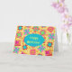 Dites "Joyeux anniversaire" à un amoureux de courtepointe ou de courtepointe avec cette carte de voeux colorée et entièrement personnalisable. Ajoutez vos propres mots au recto si vous envoyez la carte pour une autre raison. Les mots de sentiment à l'intérieur de la carte peuvent également être customisés à vos propres mots. Cette courtepointe originale fait une carte de voeux colorée vibrante. L'art de la surface composée à partir de l'art original présente des blocs de surface de patchwork préférés, ainsi que des blocs uniques aux couleurs vives et dynamiques d'orange, jaune, rose, turquoise et vert citron sur un arrière - plan jaune ensoleillé pour une belle palette de couleurs. Un ovale bleu turquoise turquoise est sur le devant de la carte pour dire "Joyeux anniversaire" ou autre salut de votre choix. Montrez votre amour de la courtepointe avec ces créations d'art de courtepointe avec d'autres produits d'art de courtepointe. L'art de la courtepointe est l'art original de Phyllis Dobbs, concepteur de tissus et de courtepointes. Cet art est disponible sur d'autres produits et dans plusieurs arrière - plans de couleurs. D'autres produits sont disponibles dans Phyllis' BusinesswithFlair store. Correspondance avec la coordination des timbres, enveloppes, autocollants et étiquettes d'adresse de retour.