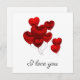Belle carte Je t'aime avec des ballons en forme de cœur rouge flottants. Intérieur vierge pour votre propre message. Le design des ballons flottants est également au dos de la carte. Divin!
