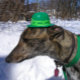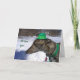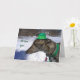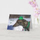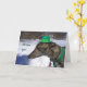 Tami, un magnifique lévrier gris tout prêt à aller chercher ce pot d'or ! Carte parfaite pour l'amoureux des lévriers ou le fanatique de chiens. Célébrez le port du vert en envoyant cette carte amusante ! "Je te défie à la course !" est issu de ma photographie originale et est sous mon droit d'auteur.