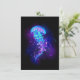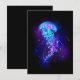 Grande méduse bleue, artistiquement dessinée, brillante, brillante, avec de longues tentacules sur arrière - plan noir avec bioluminescence violette. Méduse brillante.