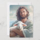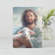 Cette carte à plat est illustrée d'une impression photo artistique de Jésus tenant un agneau.