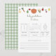 Faites vos prédictions pour bébé et donnez aux nouveaux parents vos meilleurs conseils au baby shower local avec un jeu de baby shower! Nos jeux de prédictions et de conseils pour bébés sont le moyen idéal de célébrer le nouveau bébé en route avec une activité de baby shower amusante sur le baby shower du marché de l'agriculteur. Le JORJANA local baby shower prédictions et de conception de jeu de conseil comprend un arrière - plan blanc avec des produits bio aquarelle comme citrouille, pomme, carotte, radis, maïs et tomate, et "prédictions bébé + conseils" dans une police de texte en vert, le libellé "conseil pour les parents d'être" dans une police gris clair. Ce jeu de prédictions et conseils pour bébé est le choix parfait pour un jeu de baby shower local. Comprend des devis pour : le mois de naissance, le jour de naissance, l'heure de naissance, le nom du bébé, le sexe du bébé, la couleur des cheveux et des yeux, l'apparence, le poids et la longueur, ainsi que des conseils pour les parents à être.