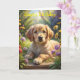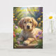 Un mignon chiot dans le jardin fleuri. Convient pour une carte d'anniversaire pour n'importe qui. N'hésitez pas à modifier le texte