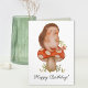 Carte Joli Hérisson Aquarelle Sur Un Champignons Anniver