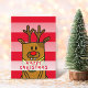 Mignonne Drôle Cerf Rose Rouge Bonne Carte de Noël. Dessin d'un cerf au nez rouge sur un arrière - plan rouge aux rayures roses. Personnalisez la carte avec votre message à l'intérieur ou effacez-la.