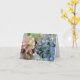 Un beau tableau de fleurs d'hydrangée dans de jolies couleurs couvre l'avant de cette carte blanche, note. Bleu, vert, rose et blanc fleurissent sans texte à l'intérieur. Notes florales personnelles pour l'été ou pour saluer des amis, ou à utiliser pour toute occasion.