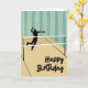 C'est une carte d'anniversaire pour quiconque aime le volley-ball. Il a la silhouette d'une joueuse de volley-ball qui saute pour atteindre un volley-ball au filet. Le texte dit : "Joyeux anniversaire."