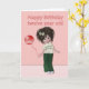 Une jolie petite poupée pixie habillée d'un tee - shirt blanc et d'un pantalon vert. Elle a des cheveux foncés pointus avec un arc vert. Elle a un ballon rouge attaché autour du poignet. Le texte dit "Joyeux anniversaire de douze ans" Vous pouvez modifier le texte intérieur. D'autres cartes avec ce design mais pour différents âges et occasions sont disponibles sur http://www.zazzle.com/mycardstore