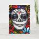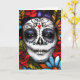 Fête florale vibrante de l'image morte. De riches fleurs aux tons bijoux entourent le visage d'une femme peint pour la fête mexicaine des morts. Prenez le temps de sentir les roses, et d'envoyer une belle carte de voeux...