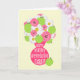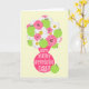 Une carte de jour pour l'appréciation des enseignants illustrant un vase rose rempli de marguerites, de tulipes roses chaudes et de pommes vertes. Le texte sur le vase dit "Joyeuse journée d'appréciation des enseignants !" À l'intérieur.