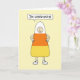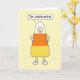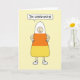 Un dessin animé d'une personne dans un costume de cornet de bonbons géant, sur un fond de couleur citron.
