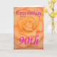 Une carte de voeux d'anniversaire avec l'image d'une belle fleur jaune avec garniture rose à chacun de ses pétales. La carte a le massage "Joyeux 90e anniversaire" en lettres roses. Tous les travaux et les images de martinspixs, revenez bientôt voir de nouvelles cartes de voeux.