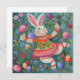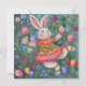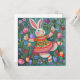 Joyeux Pâques ! Un joyeux lapin de Pâques danse en fleurs avec des oeufs décorés.