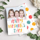 Script de typographie rouge, orange et bleu clair fantaisie moderne Carte de voeux photo de la fête des mères joyeuse avec un doodle motif ballons coloré sur le dos. Personnalisez-le avec votre photo et signature horizontale / orientée paysage! — Parfait pour envoyer vos meilleurs voeux et votre amour à votre mère !
