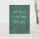 Nous vous souhaitons une très bonne Fête des Pères ! Cette carte simple et élégante est parfaite pour tout papa, grand-père ou figure paternelle. Personnalisez le message à l'intérieur de cette carte moderne de Fête des Pères pour un effet personnel. L'écriture blanche sur le devant est moderne et chic sur le fond vert texturé. L'intérieur présente un texte bleu coordonné. Trouvez plus de styles et de couleurs par Lea Delaveris Design.