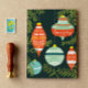 Envoyez des voeux festifs cette année avec cette carte de Noël illustrative de Bonnes Fêtes avec des ornements rétro du milieu du siècle.