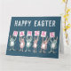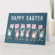Carte de Pâques pour quelqu'un avec un nom de 6 lettres. Carte de Pâques amusante avec illustration de lapins en rose et bleu. Les lapins tiennent des cartes pour épeler le nom.