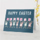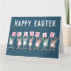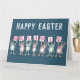 Carte de Pâques pour quelqu'un avec un nom à 7 lettres. Carte de Pâques amusante avec illustration de lapins en rose et bleu. Les lapins tiennent des cartes pour épeler le nom.