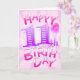 Bonne carte du 11e anniversaire. Couleur : La plupart du temps rose et violet. Salutation à l'intérieur : Joyeux anniversaire, que ce jour soit toujours spécial à retenir.