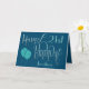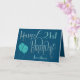 Un design élégant de typographie ornée aux couleurs masculines pour un 21ème anniversaire. Happy Birthday est placé dans un script décoratif en bleu, et l'âge est dans une police de coordonnées en turquoise doux, avec le nom de votre destinataire, sur un arrière - plan bleu foncé. Vous pouvez modifier le message à l'intérieur de votre propre salutation. Les ballons turquoises brillants Faux ajoutent une touche de finition parfaite à l'avant ! Le même arrière - plan bleu se poursuit à l'intérieur.